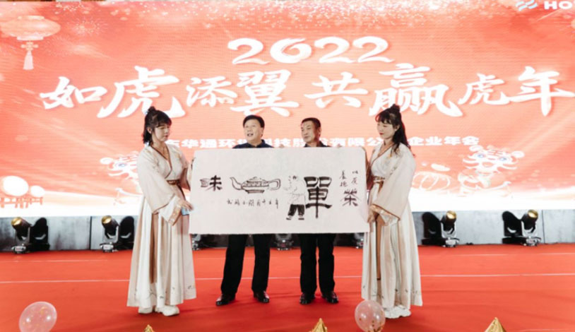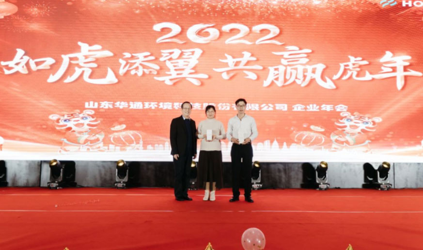 轉瞬間2021年已邁著堅定的腳步離我們遠去,而充滿希望的2022正在緩緩走來,在這辭舊迎新的喜慶日子里,山東華通環境科技股份有限公司為了感謝全體員工及合作伙伴一年來的辛苦和付出,于12月31在青島市星河灣酒店召開了“如虎添翼 共贏虎年”為主題的企業年會。公司董事長、總經理、特邀嘉賓及全體員工家屬在喜慶、祥和、熱烈的氛圍中,齊聚一堂,共慶2022年公司企業年會。